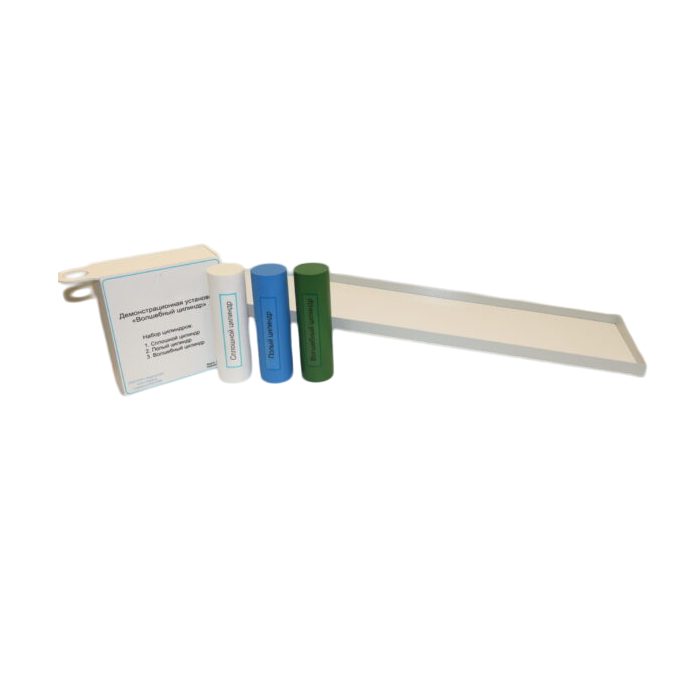 Демонстрационная установка «Волшебный цилиндр» предназначена для демонстрации различного характера движения образцов одной массы по наклонной плоскости и их физического объяснения.