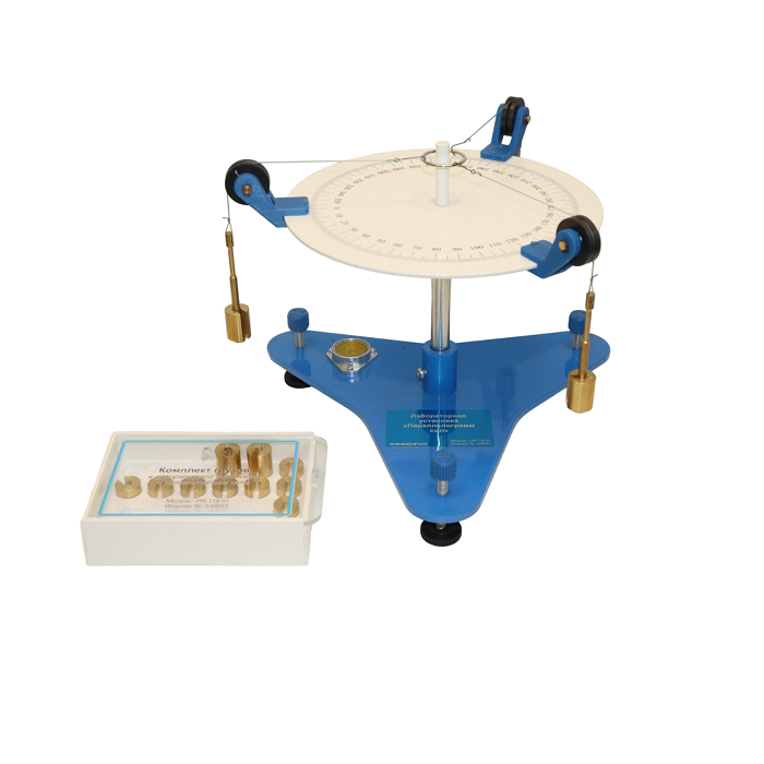 Лабораторный установка «Параллелограмм сил» предназначен для экспериментального исследования векторного сложения сил.