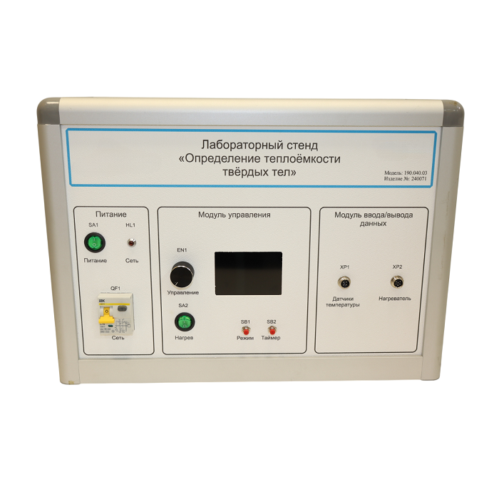 Лабораторный стенд «Определение теплоёмкости твердых тел» применяется для проведения лабораторных и практических работ по тематике «Теплоэнергетика и теплотехника» в высших и средних профессиональных учебных заведениях.