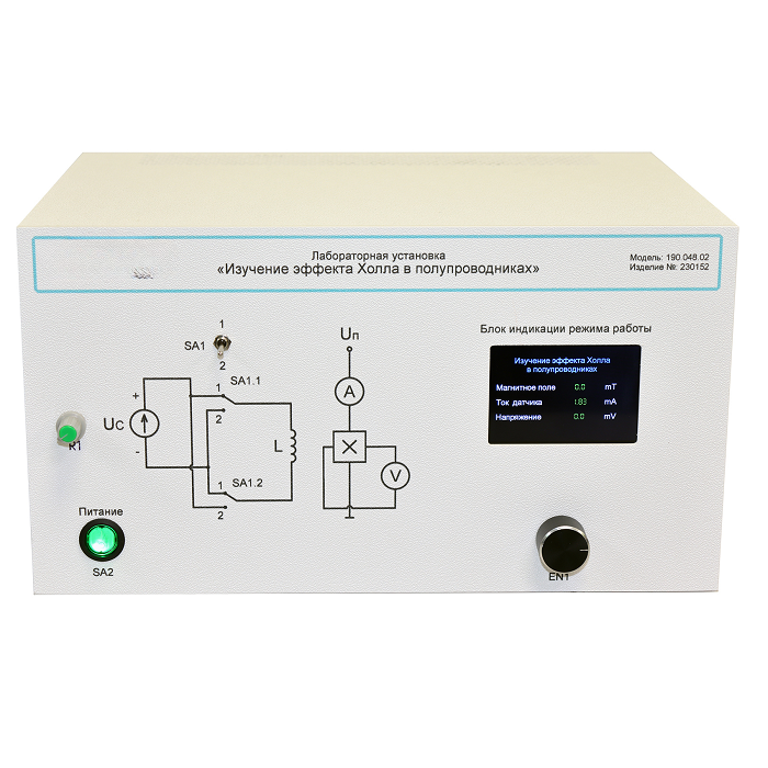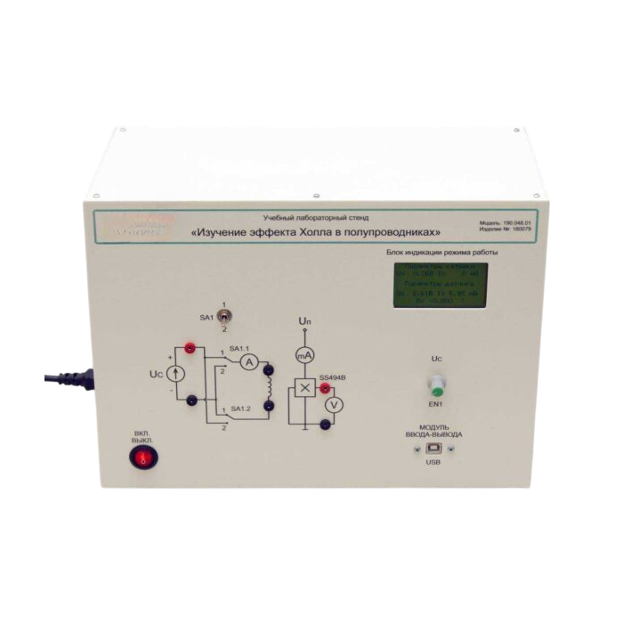 Лабораторная установка формирует одно рабочее место и обеспечивает проведение эксперимента по теме «Изучение эффекта Холла в полупроводниках» учебного лабораторного практикума.